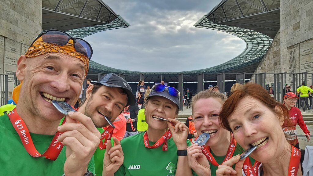 Ein echtes Highlight ist jedes Jahr unsere Teilnahme am Berlin S25 Team Run. Im ersten Jahr bestritten wir die 5×5 km Staffel durch den Tiergarten – jeder übernahm seine Etappe, gab alles und wurde vom Team ins Ziel getragen. In den letzten beiden Jahren führte uns der Schlussspurt durch das Marathontor des Berliner Olympiastadions, begleitet von Jubel und Trommelmusik ging es ins Ziel – ein unvergessliches Erlebnis, Gänsehaut garantiert! Dieses Jahr gab es sogar noch mehr Grund zur Freude: Unser Team erreichte einen großartigen 15. Platz von insgesamt 63 Teams.